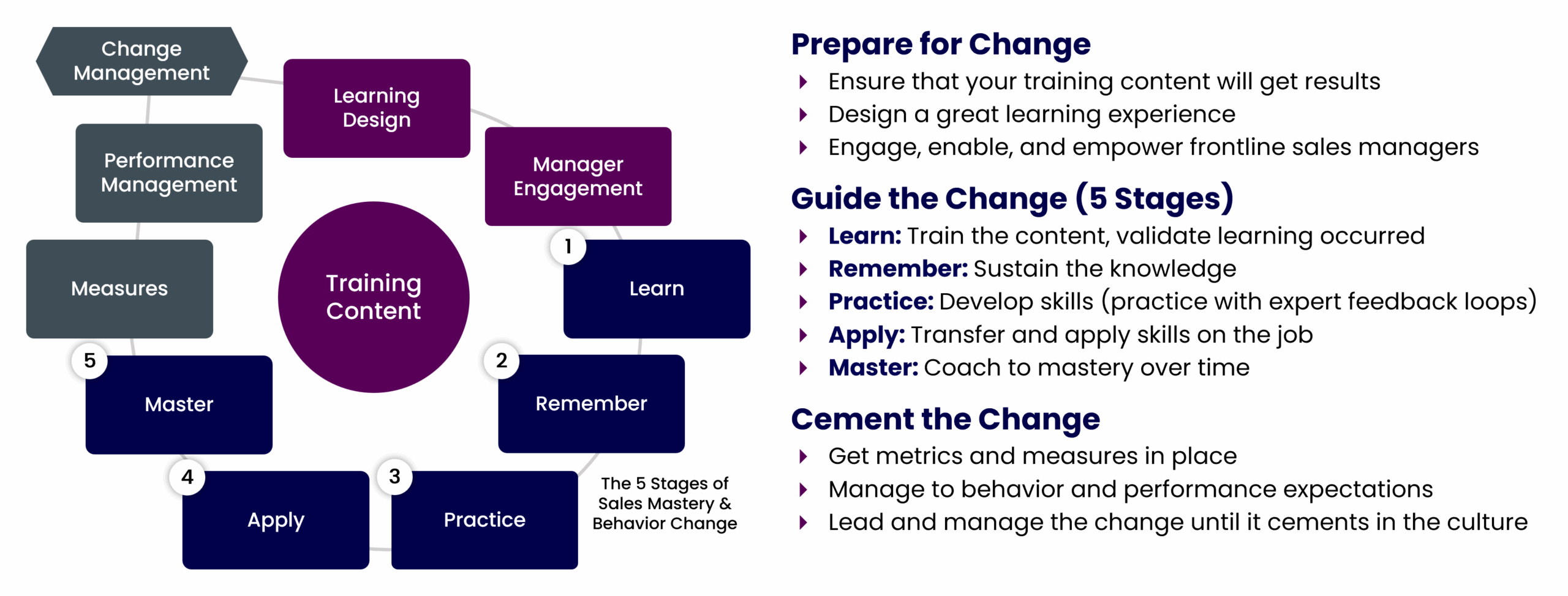 - Reinforce learning through practice, role play, and manager-led coaching.