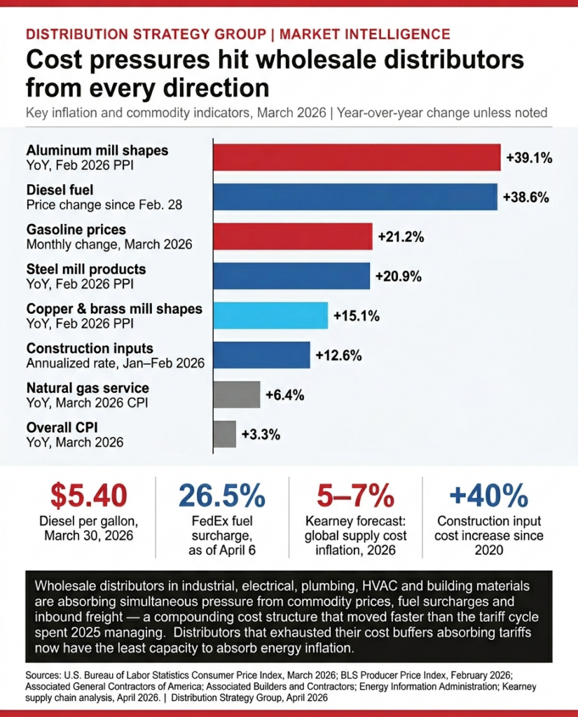 The operating environment for wholesale distributors through mid-2026 is defined by a cost structure that is being pressured from multiple directions without a single lever to relieve it. Electrical, plumbing, HVAC and building materials distributors face commodity input costs tied directly to the metals, resins, and energy feedstocks under the sharpest pressure. Industrial distributors face those same input cost dynamics against a backdrop of slowing customer demand. The distributors best equipped to protect margins are those that have built dynamic pricing systems, diversified their carrier networks, and converted freight agreements to floating-fuel structures. Those still absorbing costs on fixed contracts will find the second quarter a significantly harder test than the first.