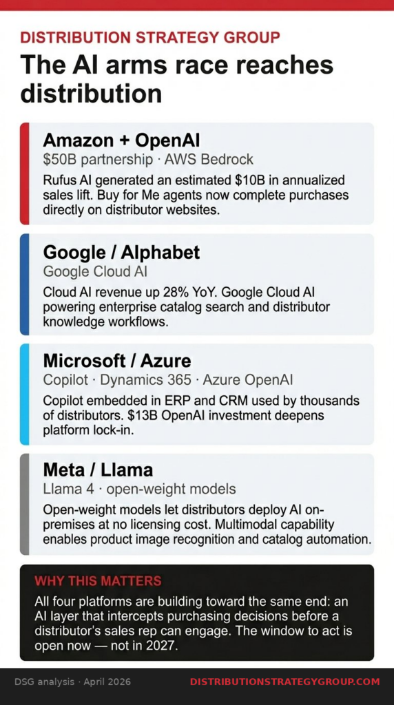 Why This Matters to Distributors: The seven largest AI companies are no longer building for researchers — they are building for the enterprise workflows distributors run every day, and the distributors that connect AI to real operations in the next 12 to 18 months will be measurably harder to compete against by 2027.