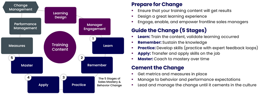 - Weak performance management: Managers must inspect what they expect and hold reps accountable for using what they learned.