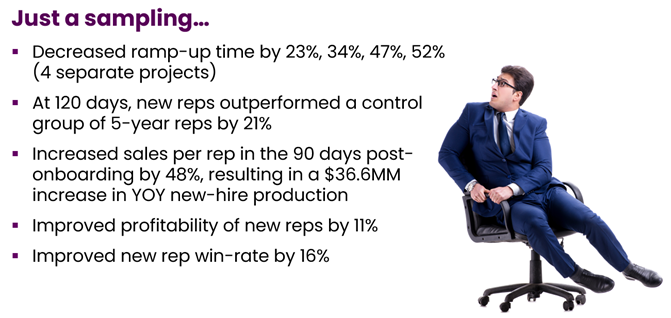 When onboarding is designed around performance milestones, teaches need-to-know content in workflow from left to right, and reinforces learning with practice and coaching, you get faster ramp, steadier execution, and measurable business impact. In implementations using this method, I’ve helped companies both shorten ramp times and increase the productivity of new reps at the same time: